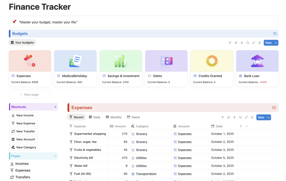 finance, budget, expense tracker, notion template, productivity